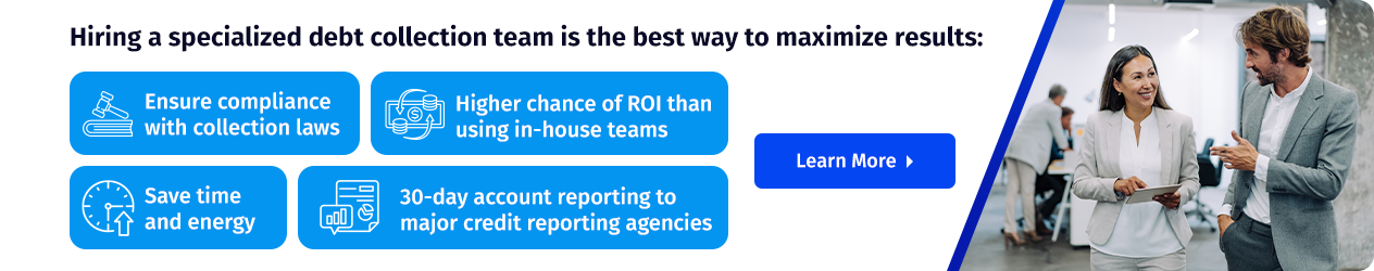 Instead of investing time and company resources into debt collection, turn to a professional money recovery agency to streamline your collection efforts and recover past-due payments.