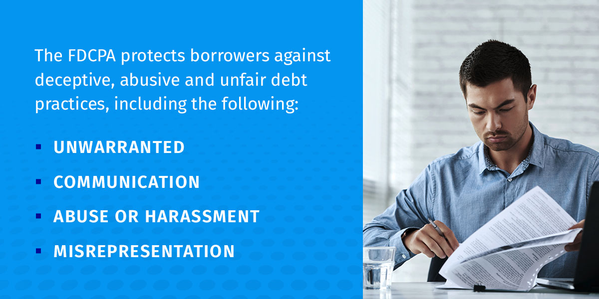 The FDCPA protects borrowers against deceptive, abusive and unfair debt practices, including the following: