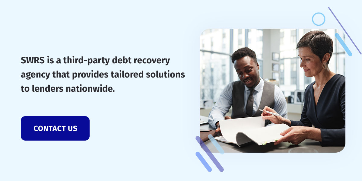 SWRS is a third-party debt recovery agency that provides tailored solutions to lenders nationwide. We have offices in Missouri and many other states, with trained professionals ready to assist. We know how to improve your recovery efforts while complying with the strict legal requirements. To learn more about how we can help you, contact us now!